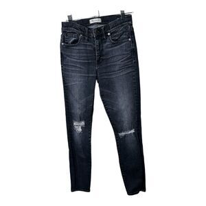 EUC smoke free dog friendly home Madewell Jeans High Riser Skinny Ripped Destroyed Charcoal Stretch Denim Sz.