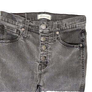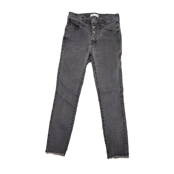 Madewell Jeans Mid Rise Skinny Button Fly Stretch Raw Hem Sz 27 Black AA940
