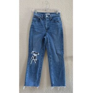 Madewell Jeans The Perfect Vintage Straight High Rise Distressed Raw Hem Blue 26