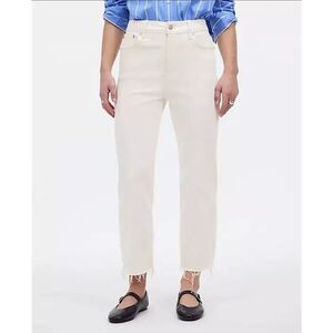 Madewell Jeans Womens 25 90s Straight Crop High Rise Fray Hem Ankle Ivory