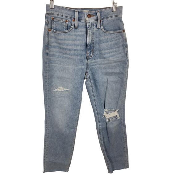 Madewell Jeans Womens 26 Blue High Rise The Momjean Distressed Raw Hem Ankle