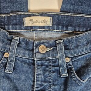 Madewell Jeans Womens 26 Blue Slim Straight Stretch Denim Frayed Hem Zip Fly