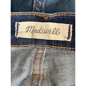 These Madewell jeans are a stylish choice for women, featuring a high-rise design with a 10" rise and a skinny fit. Made from 100% cotton denim in a medium wash, they have a raw hem detail for a trendy look. The jeans have a zip and button closure, a 5-pocket design, and a 27" inseam, making them a versatile and comfortable option for various seasons. With a classic blue color and a city-preppy theme, these Madewell jeans are a must-have addition to any wardrobe.