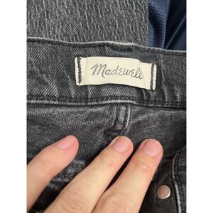 The product is a pair of Madewell jeans in women's size 27P, featuring a classic black color with a high-rise fit and wide-leg style. Made of cotton denim with a dark wash, these jeans have a zip closure and a 5-pocket design. Machine washable, they are perfect for all seasons and offer a comfortable and stylish fit for petite women looking for a versatile wardrobe staple.