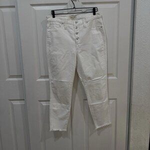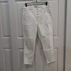 Madewell Jeans Womens Sz 31 10" High Rise Skinny Crop White Button Fly Mom Denim