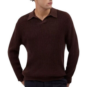 Madewell Johnny-Collar Sweater Polo Shirt Merino Wool Men XL Brown Preppy Fall