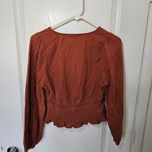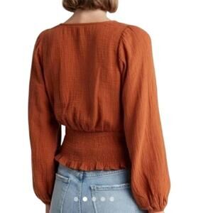 Madewell Julianne Lightspun Smocked Waist Top in Rust Orange size small
