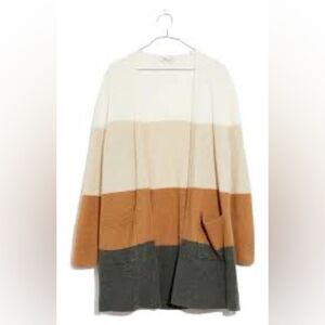 Madewell KENT COLORBLOCK CARDIGAN IN ANTIQUE CREAM Tan Medium Alpaca Wool