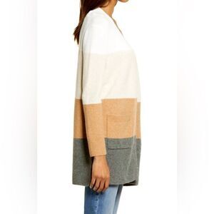 Made of signature Coziest Yarn, this best-selling color-block cardigan is kitten-on-a-cloud soft. With a slouchy fit, patch pockets and perfect-for-layering side slits, it's destined to be your take-it-everywhere sweater. Open front Long sleeves Front patch pockets 56% polyamide, 30% wool, 10% alpaca, 4% elastane Machine wash, dry flat Imported