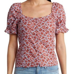 Coming in floral cotton with woven-right-in gingham checks, this square-neck top has covered buttons, shirred puff sleeves and a smocked back for the perfect fit.