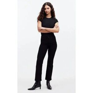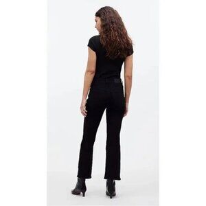 The cut: an evolution of our fan-fave Cali Demi fit, these mid-rise cropped jeans have a kicked-out flare leg and the holds-you-in sorcery of our Magic Pockets™ in front.The fabric: specially dyed to keep its deep black color longer than ever, this premium ISKO™ stretch denim hugs the body and bounces back like a pro (aka no 3pm bagginess).Our deepest, cleanest black wash.Please note: this style runs small, so we recommend ordering one size larger than your normal size.8 3/4" rise, 16 1/4" leg opening, 25 1/2" inseam.75% cotton (11% of which is recycled)/22% recycled polyester/3% elastane.Brand logo marked
