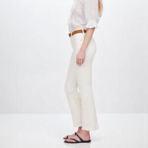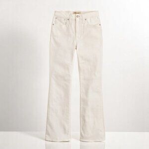 modern mid-rise cropped jeans have a kicked-out flare leg.