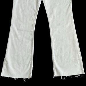Mid rise jeans have a kicked-out full-length flare leg and the holds-you-in sorcery of our Magic Pockets in front. Special details include slit side seams and raw hems.