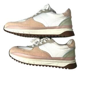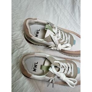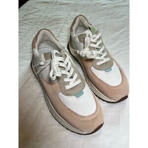 Coolest sneakers from Madewell, almost new, bottoms look never worn. There are two tiny spots from storage. Pink, cream, blue and green accent colors, white laces. Very comfortable, cushioned, great for all day.