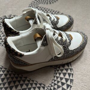 Super cute calf hair trainer sneakers from Madewell. Size 6 1/2. Were these maybe five or six times. They’re in wonderful condition.