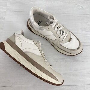 Madewell Kickoff Trainer Sneakers Size 8.5 in Neutral Colorblock Leather Cream