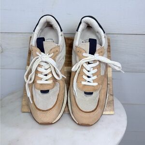 Stylish Madewell athletic shoes. Tan and cream design. Perfect for casual wear.
