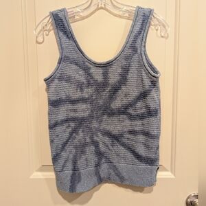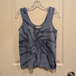 Madewell Blue Tie-Dye Fairview Sweater Tank Top. Scooped front and back, this pop-on sweater tank has cute rolled trim (and wide bra-hiding straps). Made of 100 percent cotton. Retail $69.50