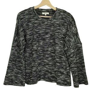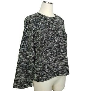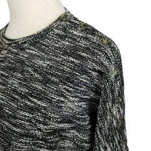 Madewell Knit Sweater Shirt Wide Sleeve Button Shoulder Black & White Small