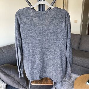 Details: Casual grey knit wool crew neck sweater with side slit detailing