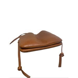 This bag is simple and streamline and perfect for any occasion two front flip pockets top zip closure, beautiful tan, leather adjustable strap with lots at the bottom to make it super cute and signature logo