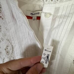 Madewell Lace-Inset Pintucked Button-Up Top M White Long Sleeve Crew Neck Eyelet