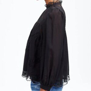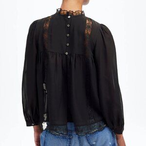 features a romantic ruffled neckline and delicate lace insets throughout. Perfectly flowy and effortlessly chic.