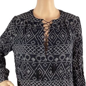 Madewell Lace-Up Peasant Top in Caravan Print Size S Black