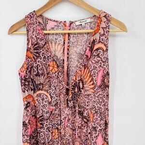 Madewell Lace-Up Ruffle-Hem Midi Dress in Bali Blooms Style AO273 Size 2