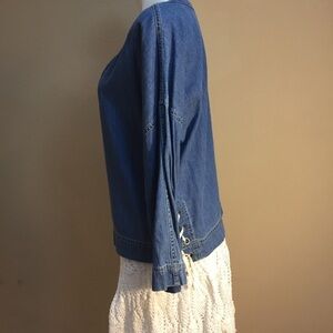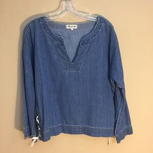 Madewell Lace-up Denim Top Medium Denim Wash - swingy denim top is revamped with cool lace-up sides that give it a slight nautical vibe. Easy, casual, funky, and so easy to wear and you instantly look cool.
