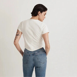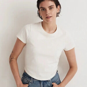 Madewell Ladies Crewneck Dart TEE Slight Crop Heavy Weight Olive Size XS