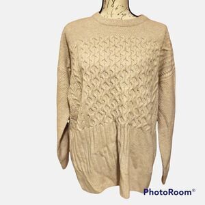 Madewell Ladies Size Medium Almond Patchwork Cable Knit Sweater