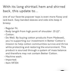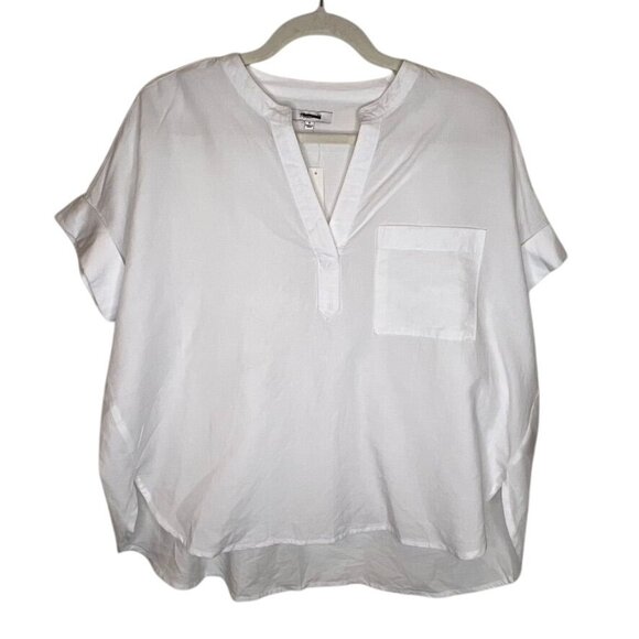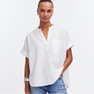 Madewell Lakeline Pipeline Popover Shirttail Top Small White Relaxed Fit NWT