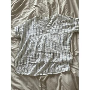 Madewell short sleeve Lakeline Popover Shirt in Stripe. Size small. Regular fit, slightly sheer. Cuffed sleeves. White with blue stripes. Slight cosmetic wear pictured. made in Vietnam. 100% Cotton. Machine wash.