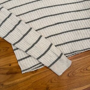 Worn and washed, in good condition. Kinit ribbing with a cropped fit. 70% Cotton/20% Hemp/10% Silk. No trades.