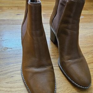 Madewell Leather Chelsea Ankle Boots Brown Block Heel Classic Booties Shoes 8.5