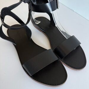 Madewell sandals flat ankle strap, black color and a minimalist design, perfect for casual wear, a buckle closure ensures a secure fit. Excellent preowned condition minor or no signs of wear.