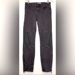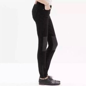 Madewell Leather Trim Skinny Skinny Jeans Leather Knees Ankle Zip Mid Rise Black