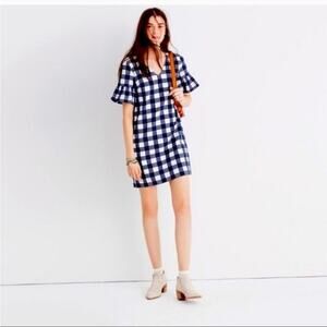 Madewell Leighton Navy And White Plaid Mini Dress Size 8