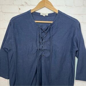 Madewell Libra Lace Up Top Tee Size XXS Navy Blue Blouse Grommet E9379