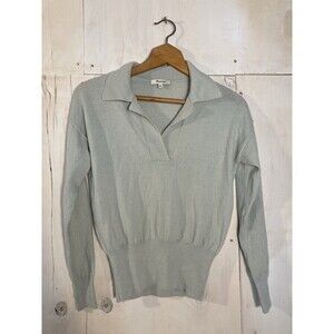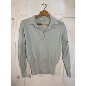 Madewell Light Green Blue Merino Wool Preppy Polo Pullover Sweater Size XS