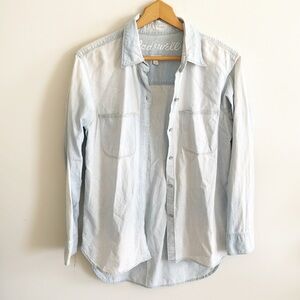 Madewell Light Wash oversized Chambray Boyfriend Button Down denim Top Sz small