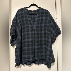 Madewell Lightspun Bubble-Sleeve Top in Plaid Dark Baltic size 4X