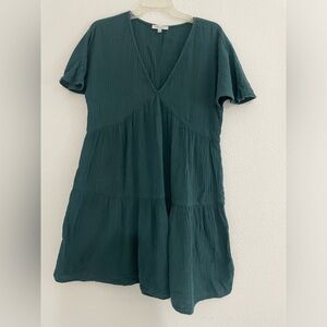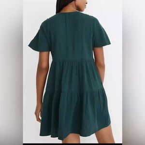 Madewell Lightspun Popover Tiered Mini Dress Green Size M