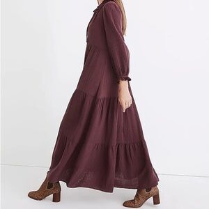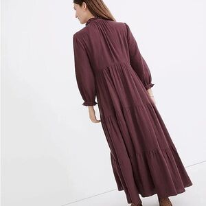 Madewell Lightspun Tie-Neck Tiered Midi Dress