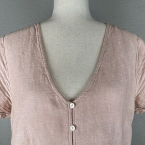 Madewell Linen Blend Alexandra Button-Front Mini Dress Size Medium M Pink Pocket