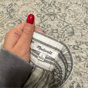 Madewell Linen Blend Curved Hem Shorts Striped Size Large Women’s White Gray
