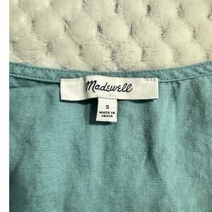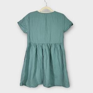 Madewell Linen Blend Minidress Women's Small Green Blue V-Neck Button Front