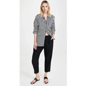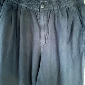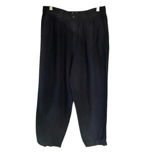 Madewell Linen Blend Button Front Cropped Pants, Black, Elastic Waist, size Medium