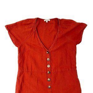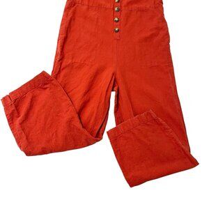 Madewell Linen Blend V-Neck Jumpsuit Playsuit Boilersuit Pockets Rust size 2